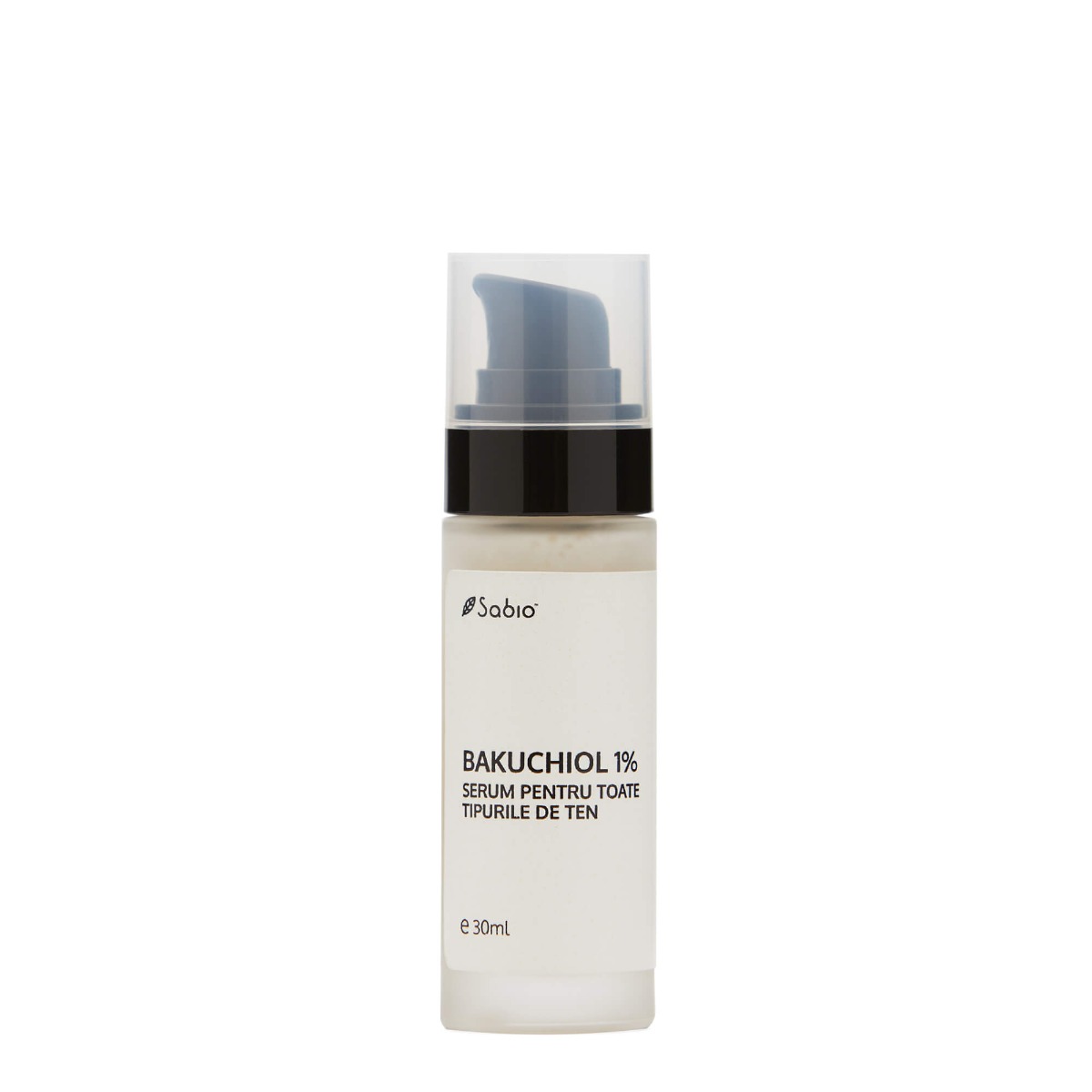 Serum pentru ten 1% Bakuchiol, Sabio – serum hranitor cu efect antioxidant si anti-aging, stimuleaza colagenul, netezeste ridurile fine si reda luminozitatea pielii, fara iritatii.