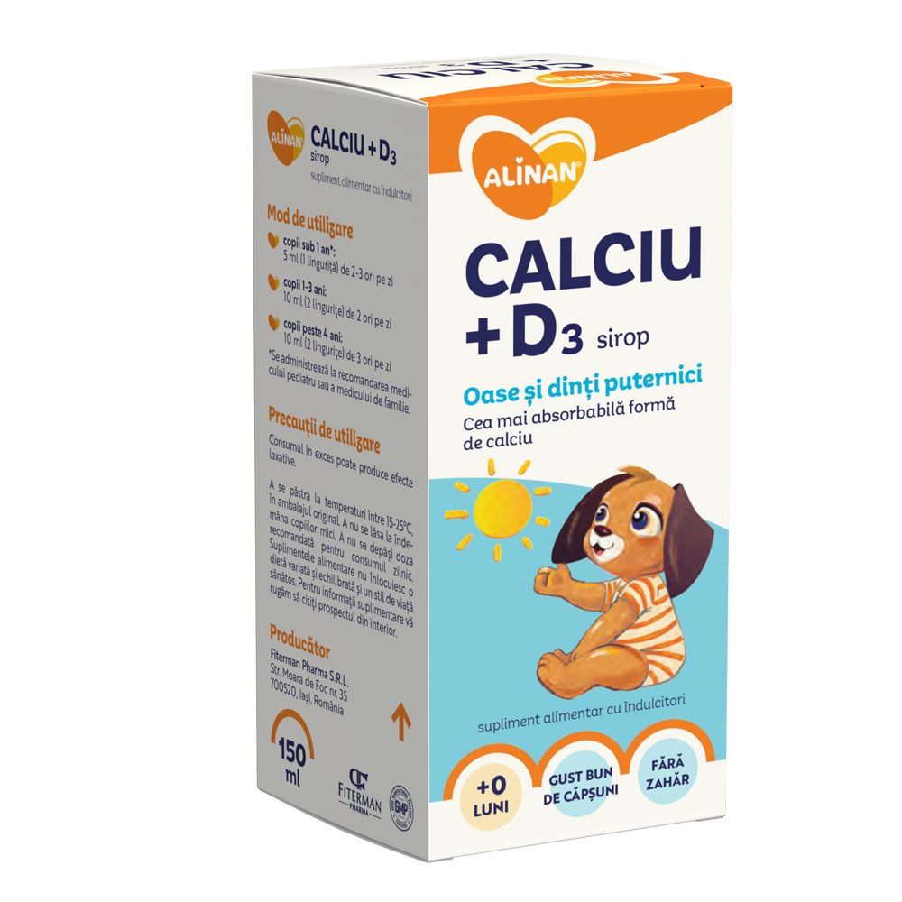 Profită reduceri și preț mic la  Sirop copii Alinan Calciu + Vit D3 , 150ml, Fiterman, numai la Dr. Max.