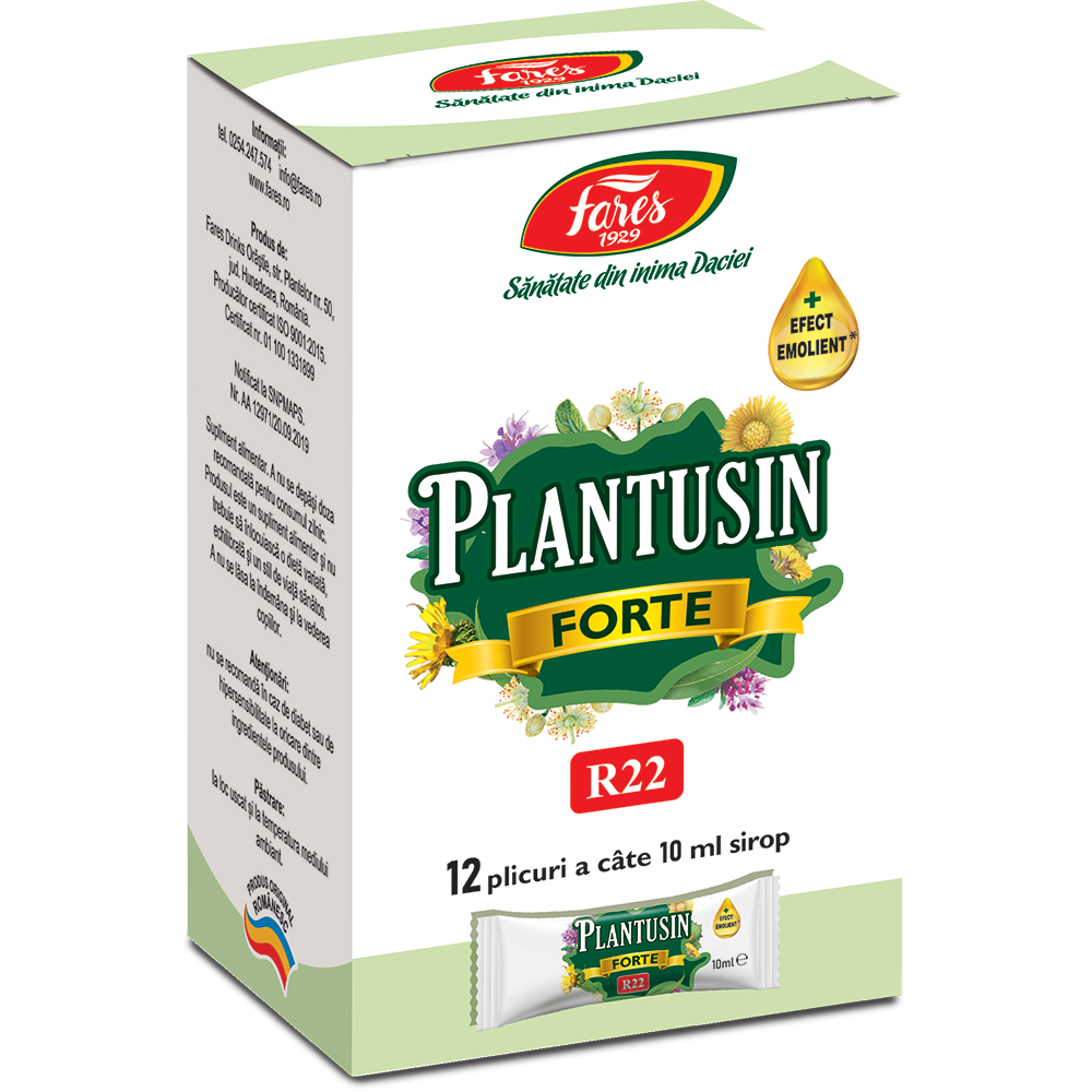 Profită reduceri și preț mic la  Sirop pentru tuse Plantusin Forte, 12 plicuri, Fares, numai la Dr. Max.