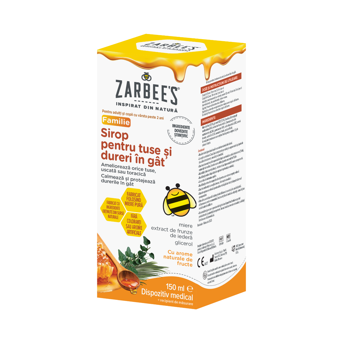 Siropul pentru tuse si dureri in gat Zarbee’s este o solutie naturala pentru intreaga familie, cu actiune tripla: calmeaza tusea, amelioreaza durerile in gat si protejeaza mucoasa, datorita combinatiei de miere, extract de iedera si glicerol.