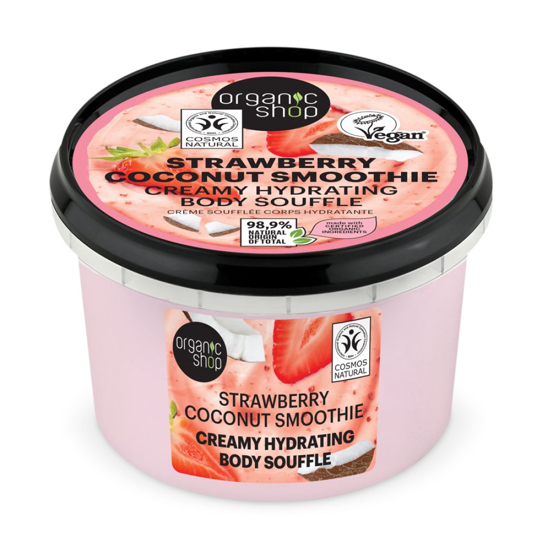Profită reduceri și preț mic la Souffle de corp Strawberry Coconut Smoothie, 250ml, Organic Shop, numai la Dr. Max.