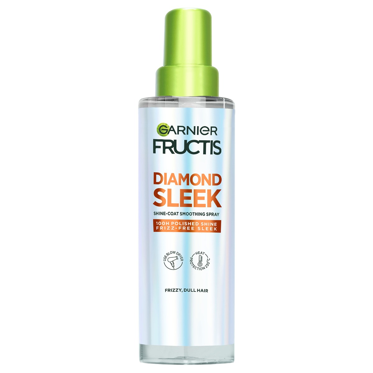 Spray pentru stralucirea parului Garnier Diamond Sleek ofera protectie termica pana la 230°C, netezeste parul si reduce frizz-ul pentru un par mai lucios si disciplinat.