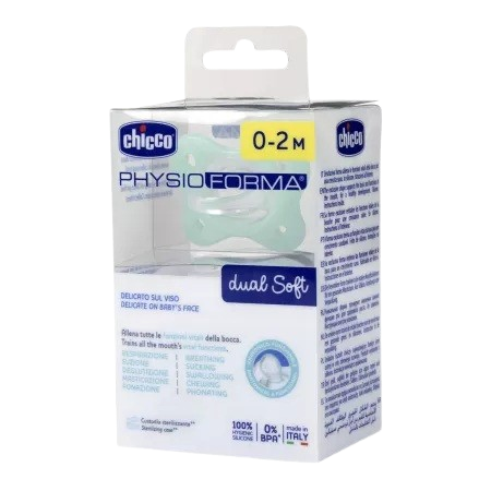 Suzeta anatomica Physioforma Dual Soft 0-2 luni, 1 bucata, Chicco ofera confort si sustine dezvoltarea naturala a gurii bebelusului.