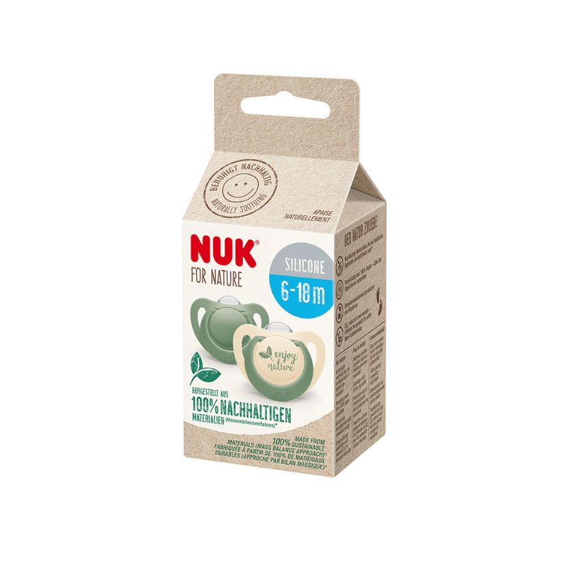 Profită reduceri și preț mic la Suzeta din silicon Nature, verde, M2, 6-18 luni, 2 bucati, Nuk, numai la Spring Farma.