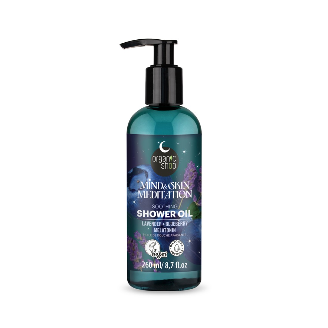 Comandă Ulei de dus cu lavanda afine si melatonina Mind&Skin Meditation, 260ml, Organic Shop de la farmacia Dr. Max.