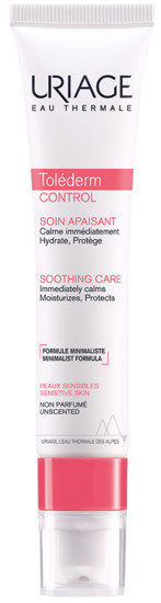 Dotat cu o formulă minimalistă, Tolederm CONTROL SOOTHING CARE este o cremă aerisită care calmează instantaneu, hidratează, protejează si oferă confort de lungă durată pielii sensibile, intolerante, hiperreactive si alergice. Datorită formulei sale de 3 ingrediente naturale active [Uriage Thermal Water + Algae Polyuronides + Plant Squalane], această ingrijire a pielii intăreste bariera pielii si isi măreste pragul de tolerantă pentru a ajuta la controlul senzatiilor de iritatie, furnicături, căldură si / sau etanseitate. CONTROLEAZA REACTIVITATEA PIELEI Acest trio de ingrediente naturale active limitează penetrarea stimulilor iritanti pe suprafata pielii. Apa termală Uriage controlează 3 neuro-receptori implicati in mecanismele de sensibilitate ale pielii pentru a-i creste pragul de tolerantă. * * test intepător efectuat sub control dermatologic pe 15 voluntari adulti cu piele sensibilă si hiperreactivă: scăderea pragului de iritatie. Calmează instantaneu senzatiile de disconfort Poliuronidele anti-iritante din alge combinate cu apa termală Uriage calmantă natural, calmează instantaneu si calmează durabil senzatiile de disconfort. HIDRATEAZA Apa termală Uriage si glicerina hidratează durabil pielea