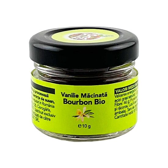 Vanilia macinata BIO este un condiment alimentar, 100% natural, care este folosit pentru aromatizarea deserturilor, a prajiturilor sau a bauturilor.