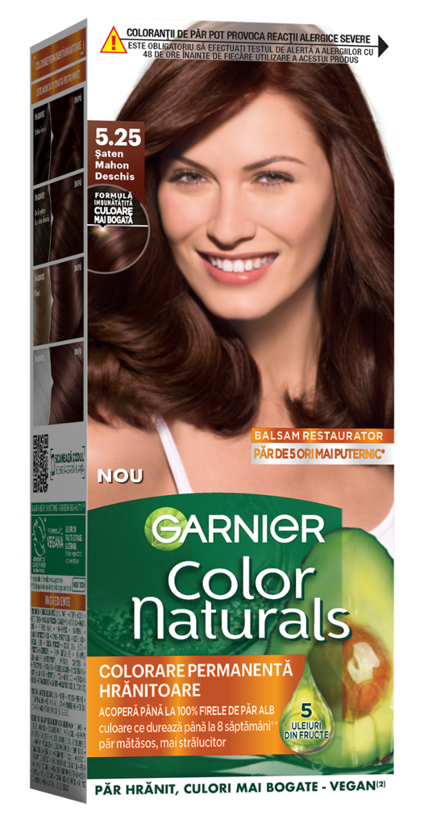 Profită reduceri și preț mic la Vopsea de par permanenta Color Naturals 5.25 Saten Mahon Deschis, 112ml, Garnier, numai la Dr. Max.
